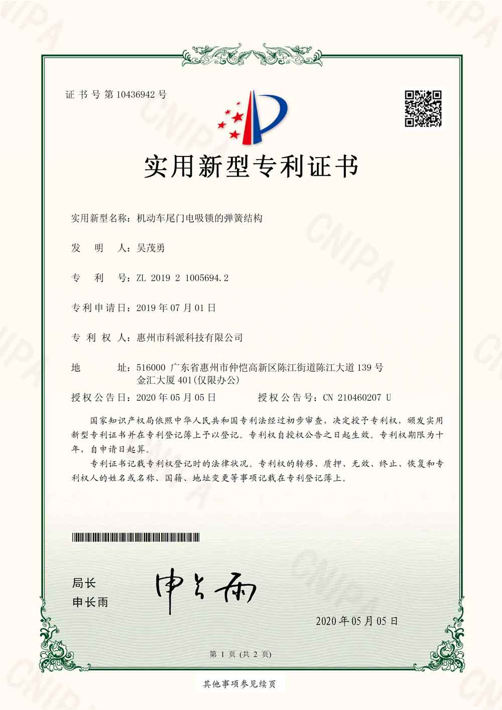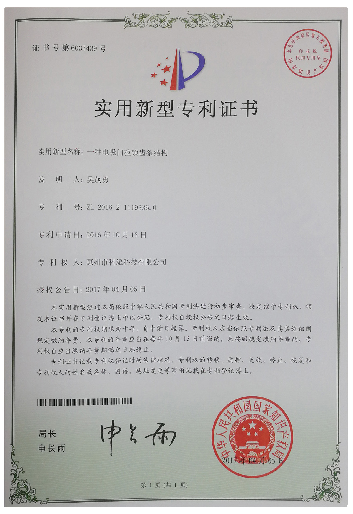 專利證書