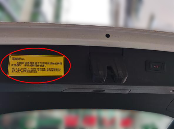 14、如圖在尾門上粘貼“溫馨提示”標(biāo)簽。