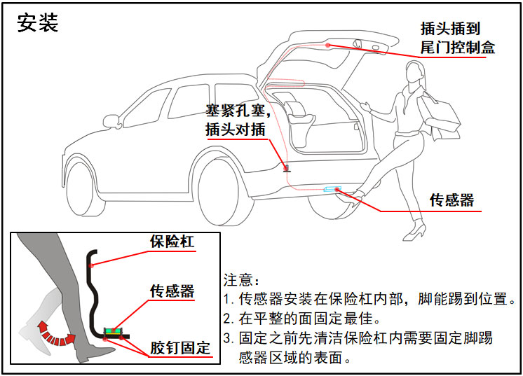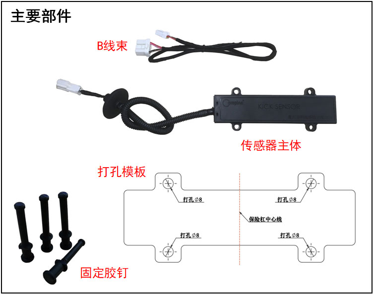 12、B線插頭對插腳踢傳感器主體線束插頭。