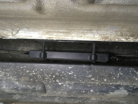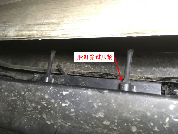 5、穿膠釘?shù)奖kU(xiǎn)杠開孔內(nèi)。