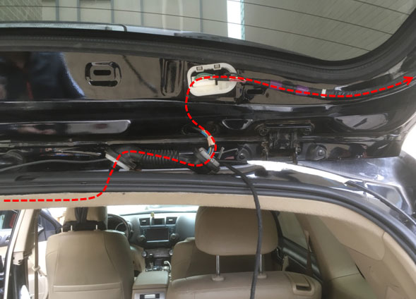 10、穿線束B線到尾門內(nèi)(未插膠殼,請勿對插:電尾控制盒在尾門)。